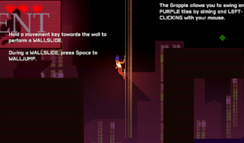 Hold Directional Key against a wall to Wall-Slide and press SPACE to Wall-Jump.