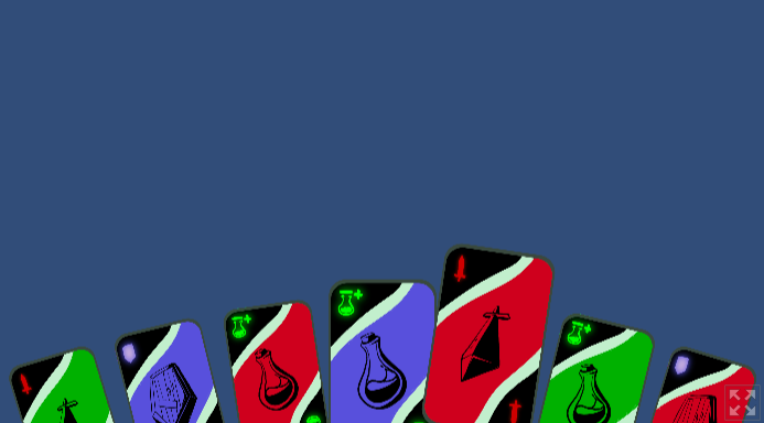 This card battler features a "UNO" inspired colour matching mechanic, with a and "Slay the Spire" fighting twist. You can choose between attack cards, defense cards and healing cards that are affected by the matching red, purple and green cards.